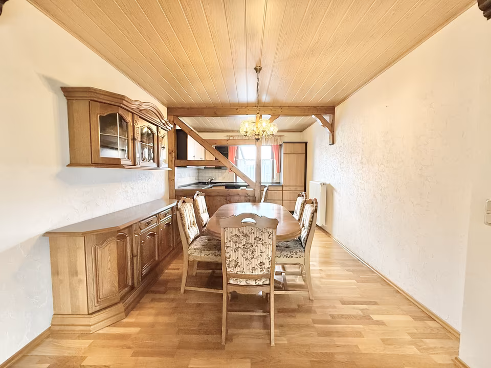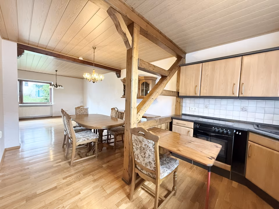 Angrenzend befindet sich die Küche mit direktem Zugang zum Essbereich. Eine zweite Küche mit bietet zusätzliche Nutzungsmöglichkeiten – ideal als Hauswirtschaftsraum, Zweitküche oder zur individuellen Gestaltung.