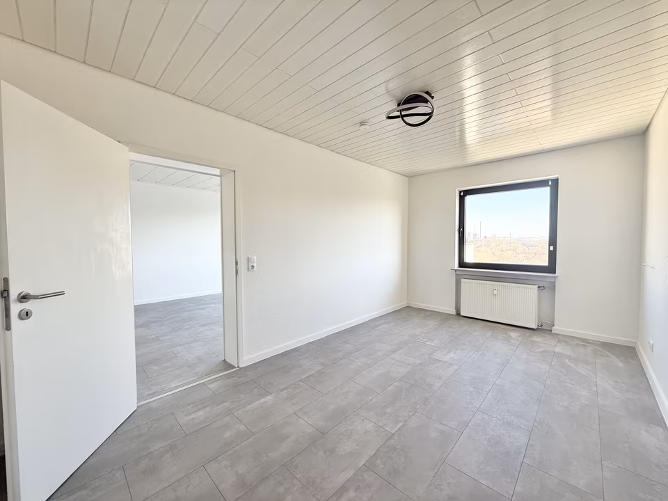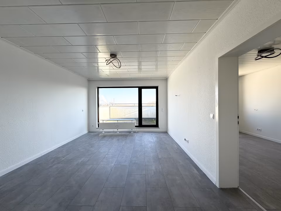 Folgen Sie dem Flur weiter geradeaus, gelangen Sie in den offenen Wohnbereich, der großzügig gestaltet ist und viel Platz für eine Wohnlandschaft sowie einen Essbereich bietet. Die Raumaufteilung ist klar strukturiert und ermöglicht unterschiedliche Möblierungskonzepte. Besonders attraktiv ist der Zugang zur Terrasse, die sich ebenfalls direkt an den Wohnbereich anschließt. Sie bietet eine angenehme Erweiterung des Wohnraums nach draußen und eignet sich ideal zum Entspannen oder für gemütliche Stunden im Freien.