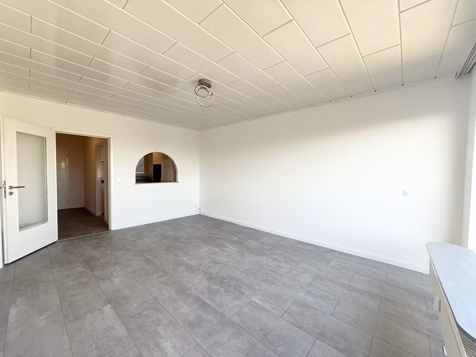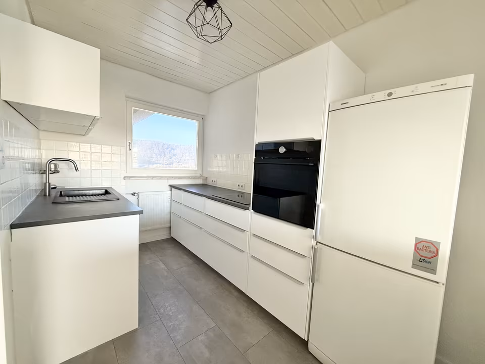 Gegenüber befindet sich die Küche, die kompakt, aber gut nutzbar angelegt ist. Sie bietet ausreichend Platz für eine Küchenzeile und die wichtigsten Elektrogeräte. Die Nähe zum Wohn- und Essbereich sorgt für kurze Wege im Alltag.