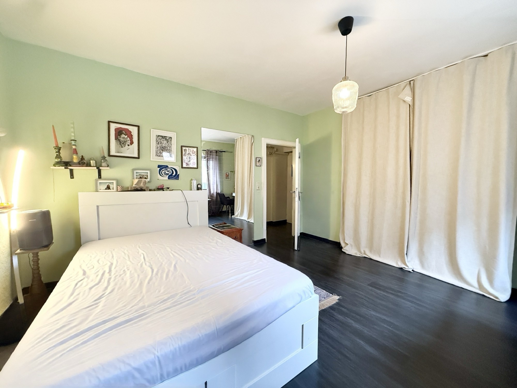 Linker Hand befindet sich das großzügige Schlafzimmer. Hier finden Bett, Kleiderschrank und zusätzliche Möbel problemlos ihren Platz. Entlang des Flurs liegt das Kinderzimmer, das sich alternativ ideal als Arbeits- oder Gästezimmer nutzen lässt.Das Badezimmer befindet sich gegenüber vom Schlafzimmer und ist funktional geschnitten und vom Flur aus erreichbar. Zusätzlich steht ein praktischer Abstellraum zur Verfügung, der wertvollen Stauraum im Alltag bietet.