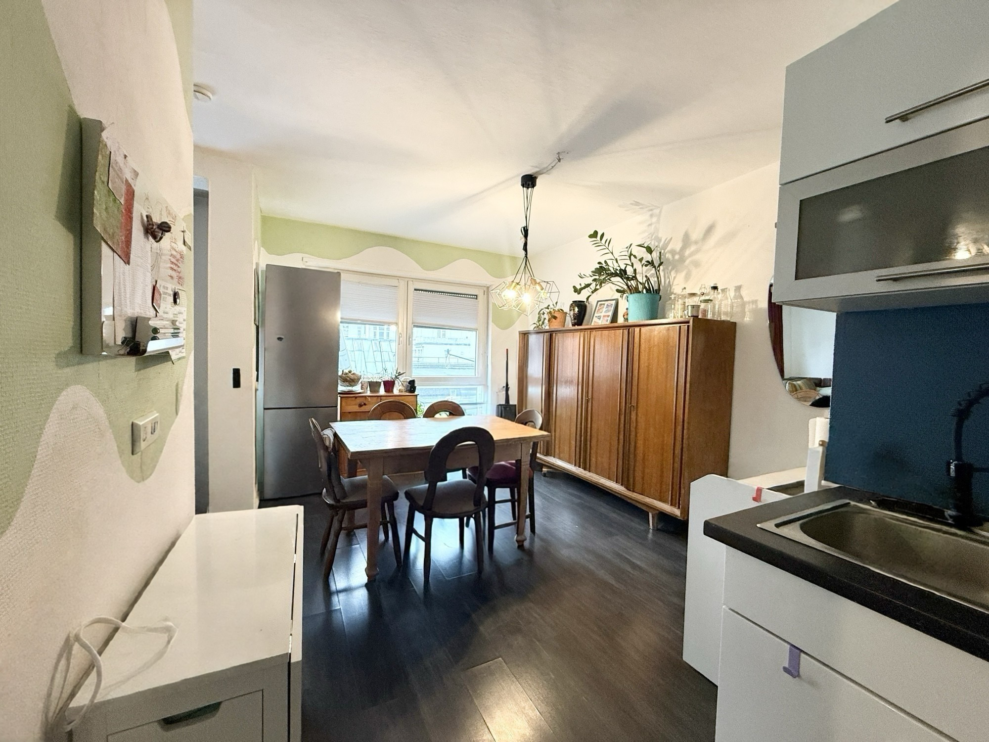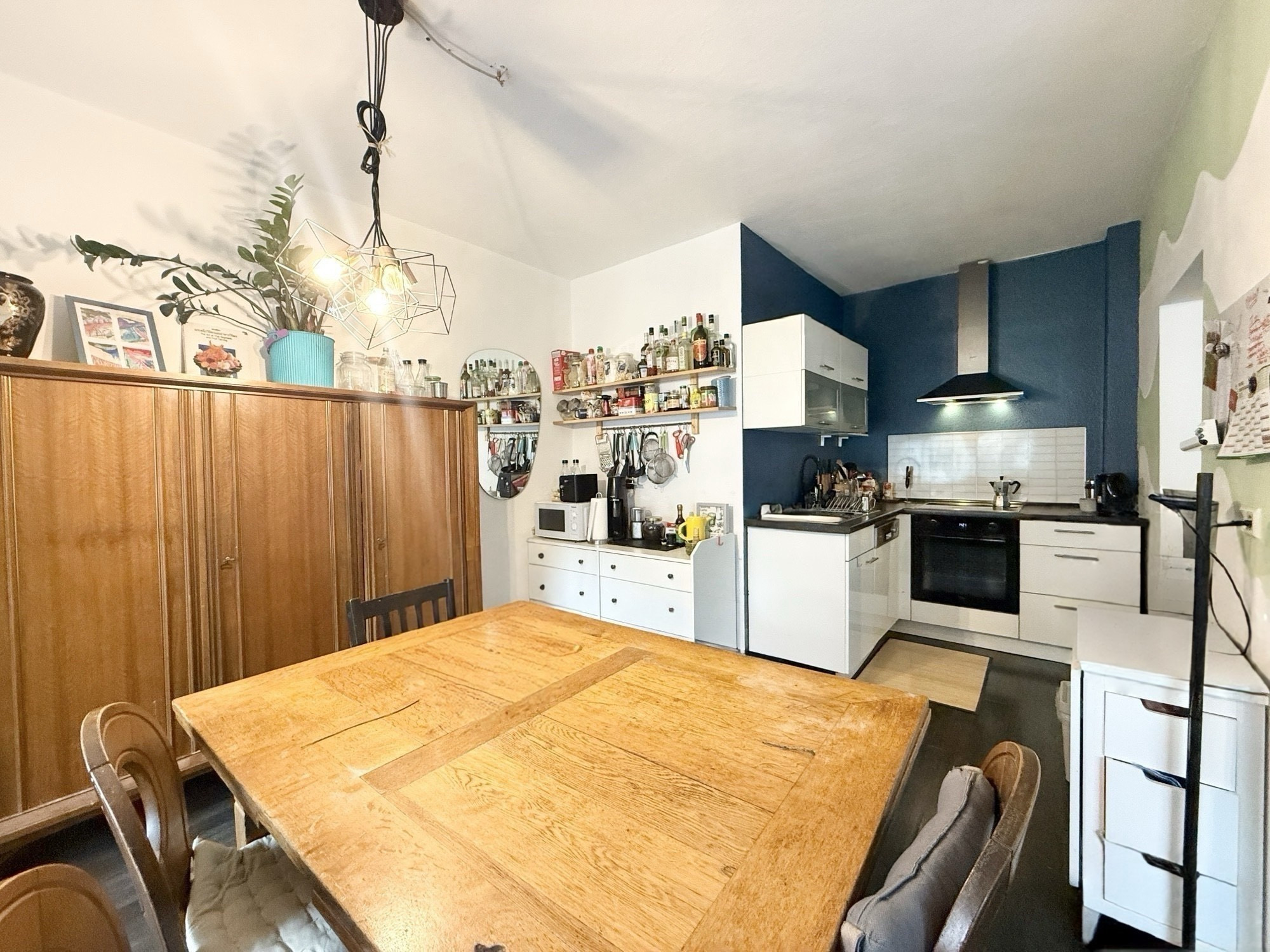Herzstück der Wohnung ist der helle und großzügige Wohnbereich. Große Fenster sorgen für eine angenehme Belichtung und schaffen eine freundliche Wohnatmosphäre. Direkt angrenzend befindet sich die separate Küche mit integriertem Essbereich, die ausreichend Platz für eine Einbauküche sowie einen Esstisch bietet.
