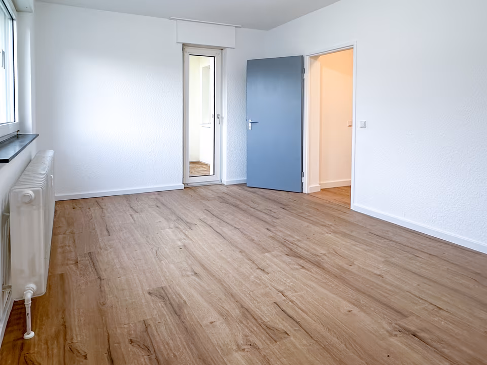 Vom Flur aus erreichen Sie anschließend das Wohnzimmer, den Mittelpunkt der Wohnung. Mit seinem großzügigen Schnitt bietet der Raum viel Flexibilität bei der Möblierung – ganz gleich, ob gemütliche Sofalandschaft, Essplatz oder Homeoffice-Bereich. Durch das große Fenster wirkt der Raum hell und einladend.