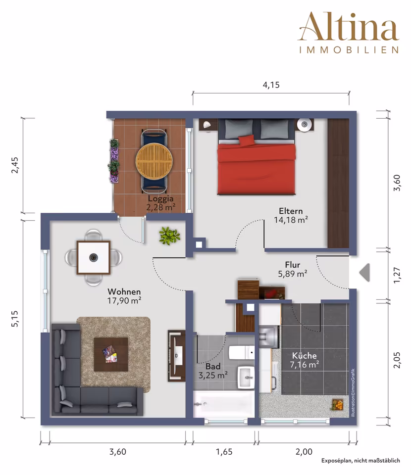 Vom Wohnzimmer aus haben Sie Zugang zur Loggia, die der Wohnung einen zusätzlichen privaten Außenbereich verleiht. Sie eignet sich ideal zum Entspannen, für ein Frühstück im Freien oder einfach als geschützter Rückzugsort an warmen Tagen.